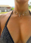 Clear crystal crosses, five to be exact will complete your look with a gothic yet chic vibe. Add a few more layers like our DBTY Choker and Pear Cut Crystal Choker to be decked in divine crystals.